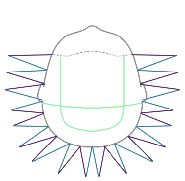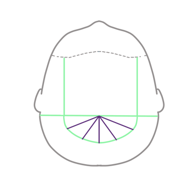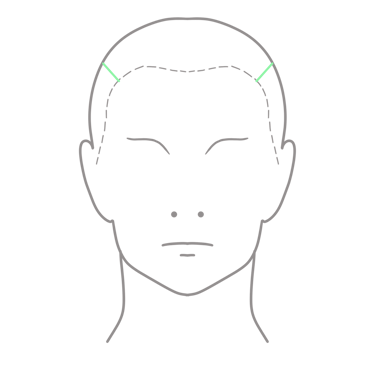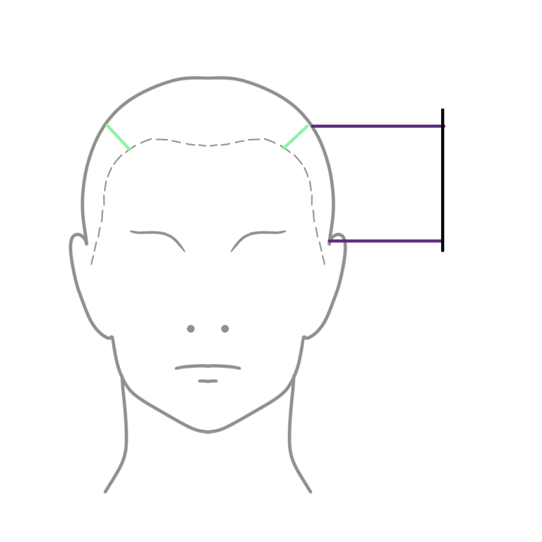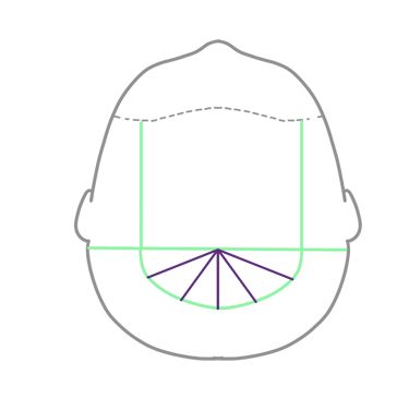 Continuaremos con la referencia de la partición superior y crearemos una especie de herradura que comprenderá la zona de los remolinos, tambien llamada coronilla o cúspide.