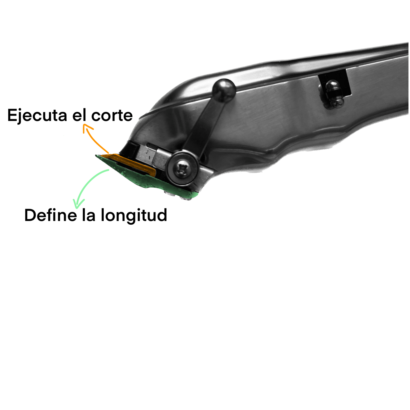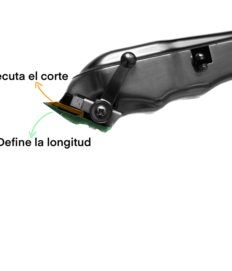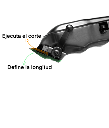 La maquina trae dos cuchillas, la superior se desliza hacia los lados para ejecutar el corte como si se tratase de una guillotina y la cuchilla inferior, gracias a la palanca de ajuste, se mueve hacia delante y hacia atrás dando mayor o menor longitud al cabello resultante gracias a la forma de cuña. El saber utilizar el calibre de las cuchillas a la hora de hacer un fade, es fundamental ya que esto nos permitirá realizar ese difuminado de sombras sin dejar ninguna linea visible.