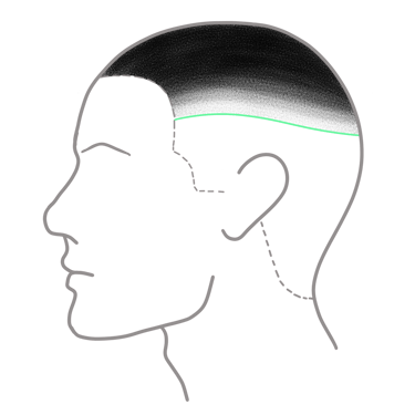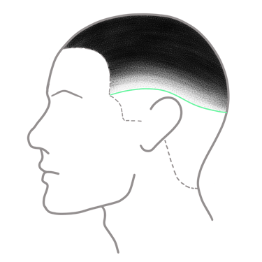 Un Mid Fade, como su nombre indica, se encuentra en la mitad de la longitud lateral del cráneo, respecto al Low Fade se encuentra aproximadamente a un centímetro por encima. La peculiaridad de este degradado es que la parte posterior viene a pasar justo por el hueso occipital, por lo que debemos tener en cuenta la prominencia de éste si lo que queremos es obtener un buen resultado. Otra particularidad es que la curva que describe es menos pronunciada que en un Low Fade.