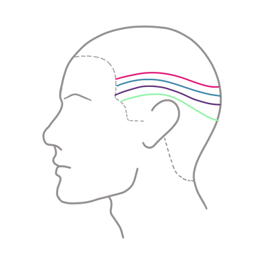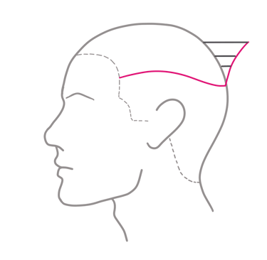 Una vez realizado el trabajo a máquina, continuaremos con la técnica de corte a peine y tijera. En el gráfico podemos apreciar cómo realizaremos un incremento en la longitud del cabello separando progresivamente el peine del cráneo a medida que subimos.