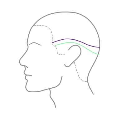 Ahora seguiremos generando líneas paralelas a la anterior, primero con el peine guía del #1 o 3mm cuchareando. Una vez hemos pasado el #1 debemos pasar el #1 1/2 o lo que es lo mismo 4,5mm y esta vez cuchareando más alto para conectar con la parte inferior del puente de conexión. Este será el último número de máquina que utilizaremos, a partir de este momento usaremos la técnica de corte a peine y tijera.