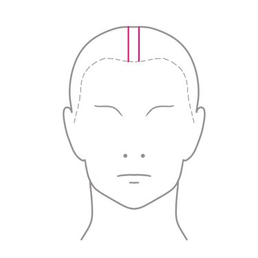 Terminado el trabajo con la técnica de corte a peine y tijera, pasaremos a conectar con la zona superior. Tomaremos una mecha guía central a modo de cresta y con una elevación de 180º la cortaremos siguiendo la forma del cráneo.