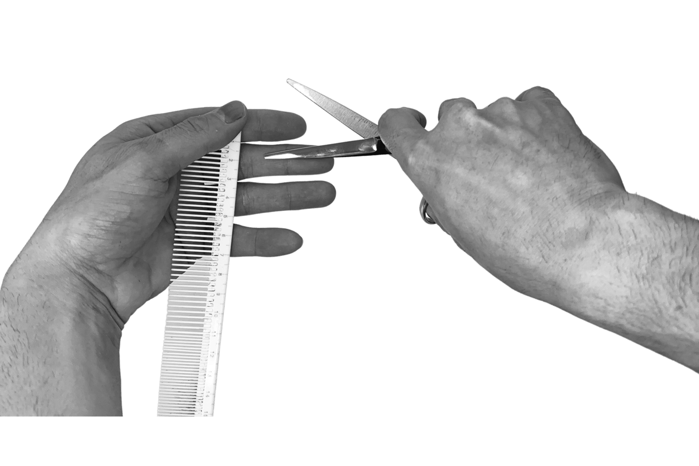 En el momento que tomamos el cabello entre dedo índice y corazón de la mano no sujeta la tijera, se procederá al corte, es entonces cuando la hoja fija de la tijera, deslizará sobre el dedo corazón mientras que la hoja móvil va ejecutando el corte. A esta técnica se la denomina: Línea de corte o punto de sección liso.